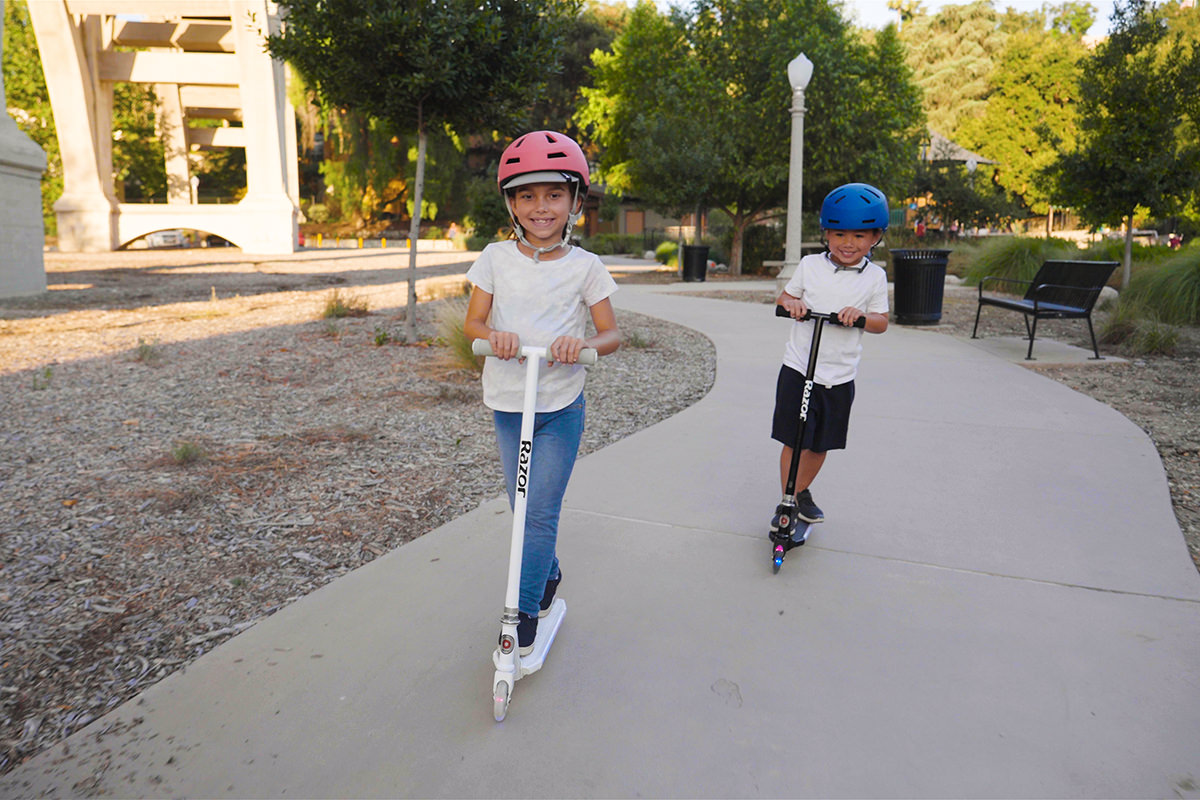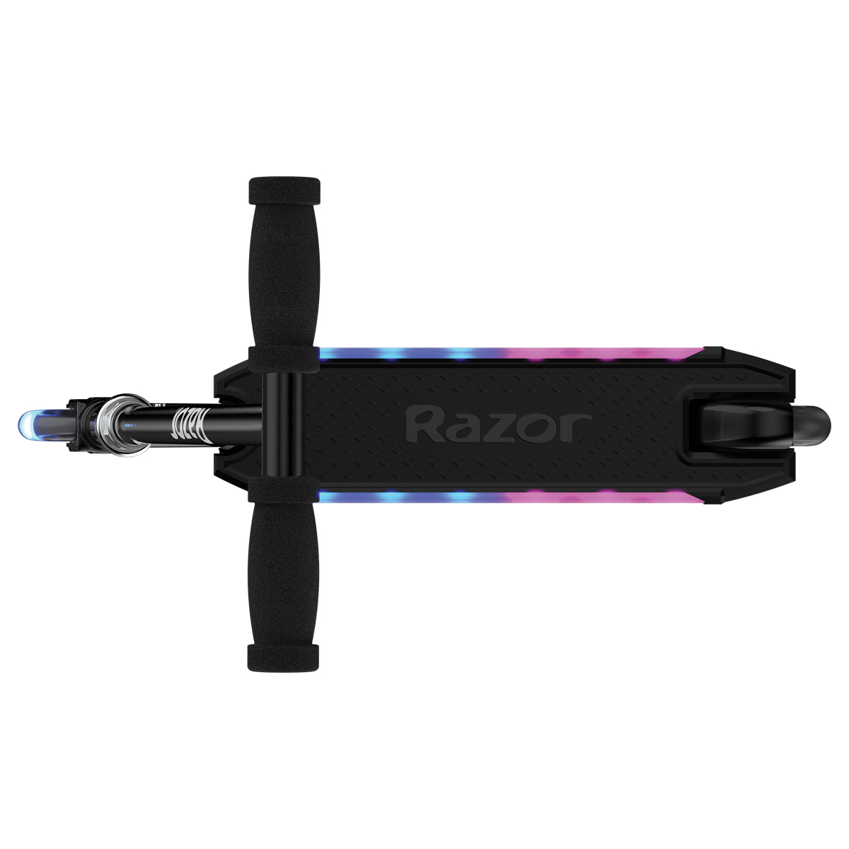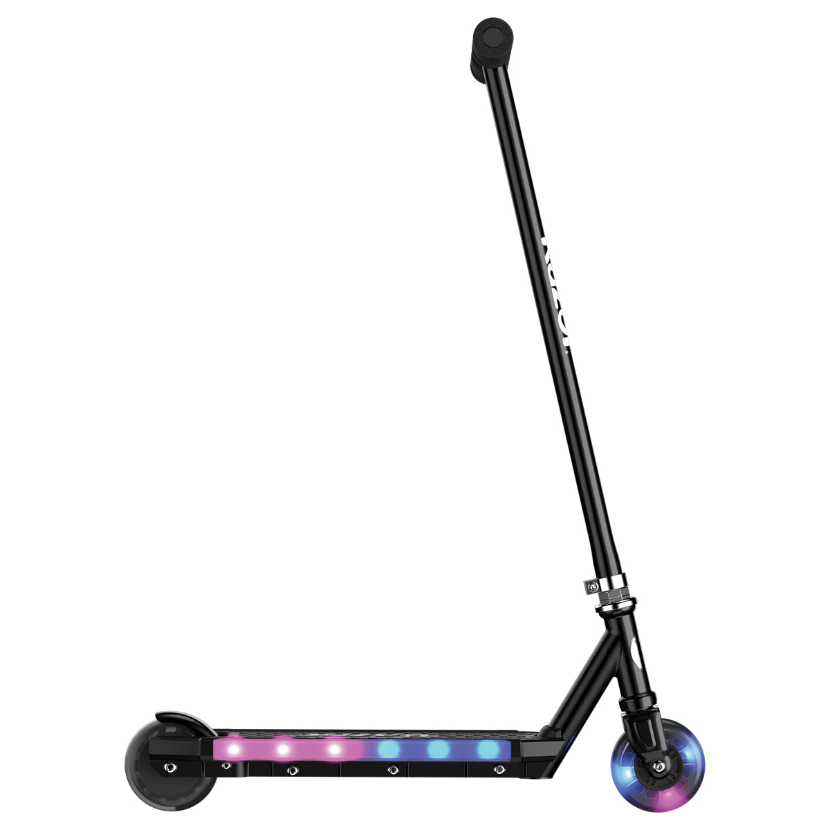 - Give the kids what they want – lights! This light-up kick scooter features multi-color LEDs on the front wheel and deck that are lit through the power of motion.