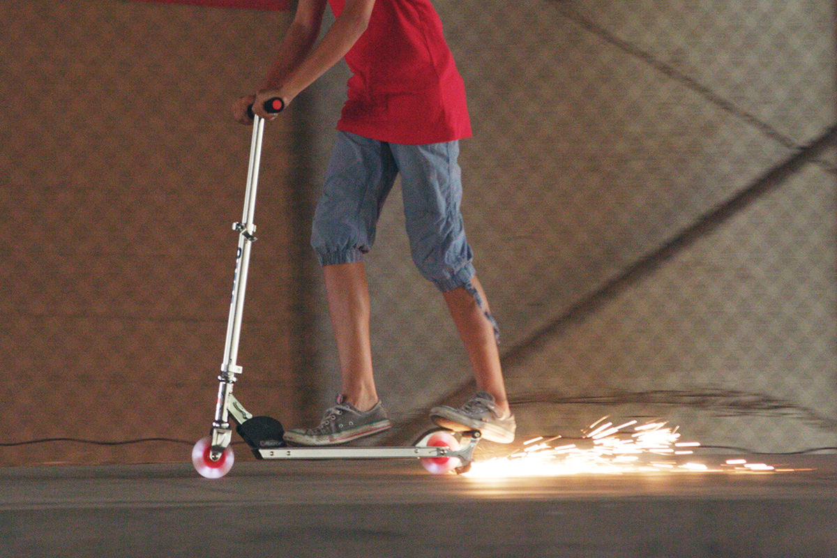 The Spark Ultra is taking light to new heights with its ultra-bright LED wheels, the brightest of any scooter in the Razor lineup. The steady white glow sets the stage for the bright flash of sparks from the Spark Bar.