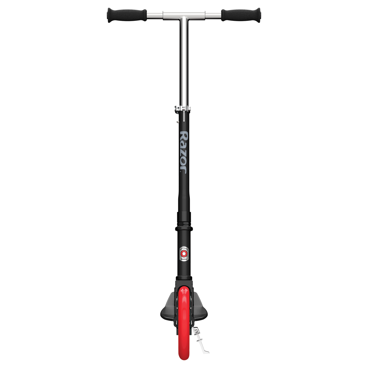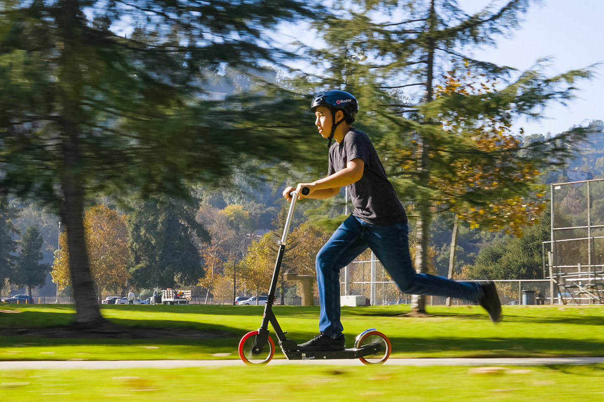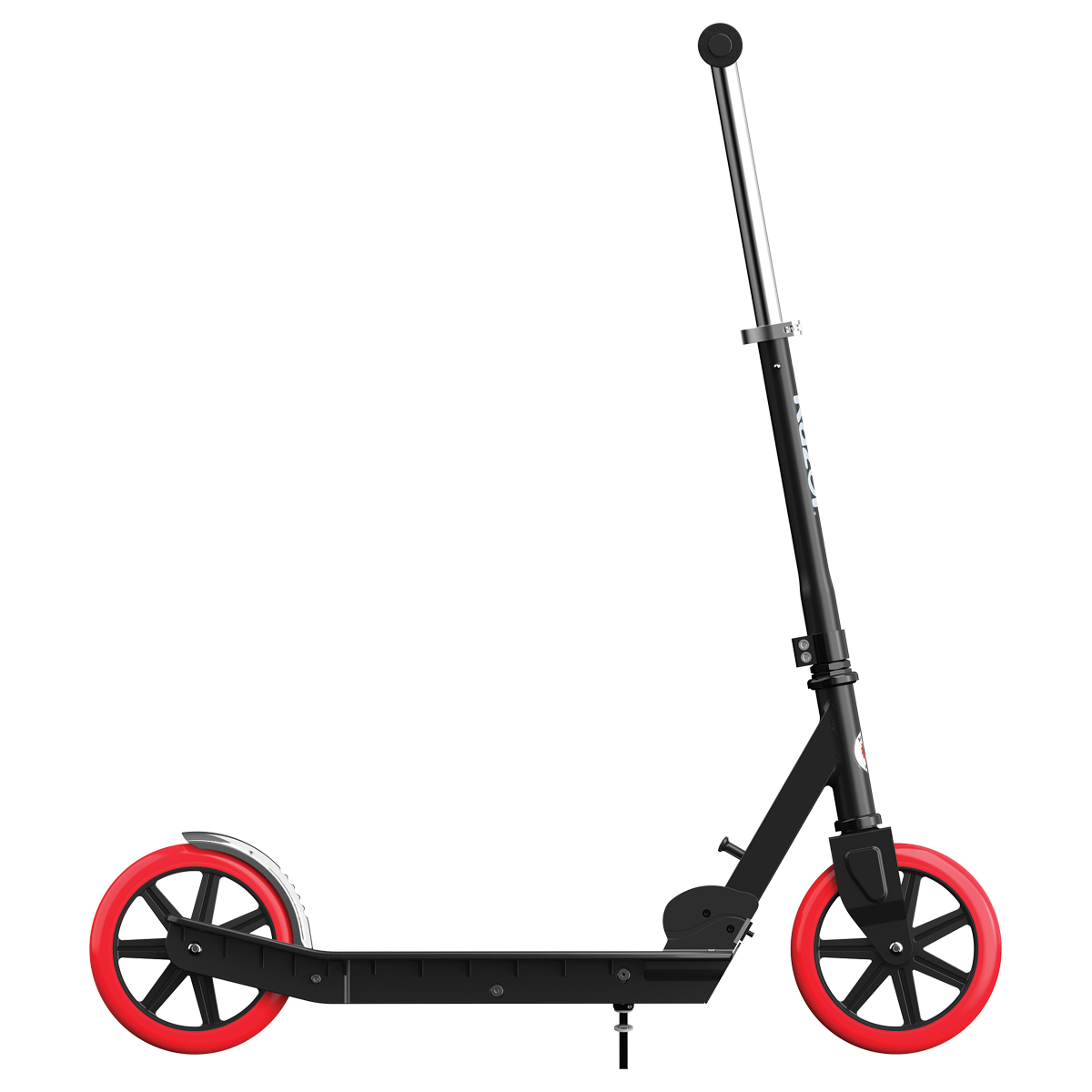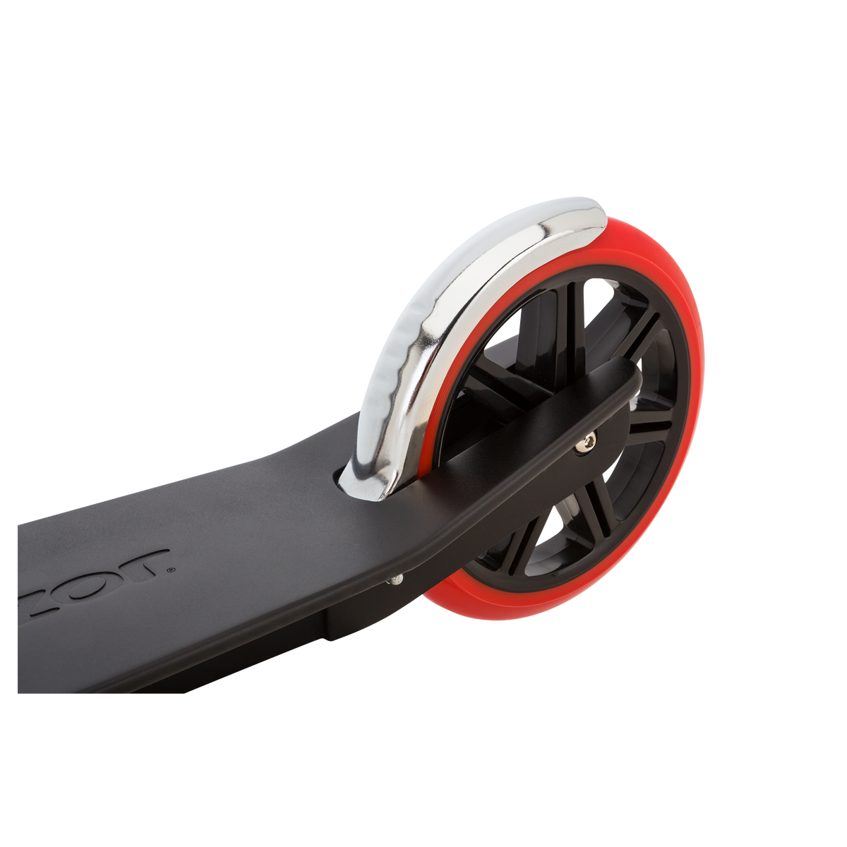The red-colored, spoked, 8-inch (200 mm) urethane wheels not only provide a smooth and comfortable ride but also bring a bright accent to the cool and stylish scooter.