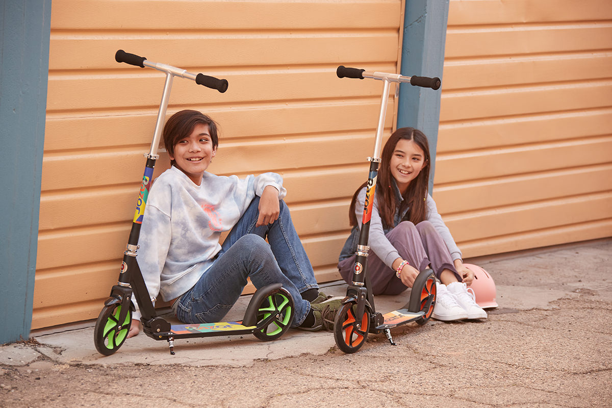 - Bold colors and attention-grabbing graphics on both handlebar and deck.