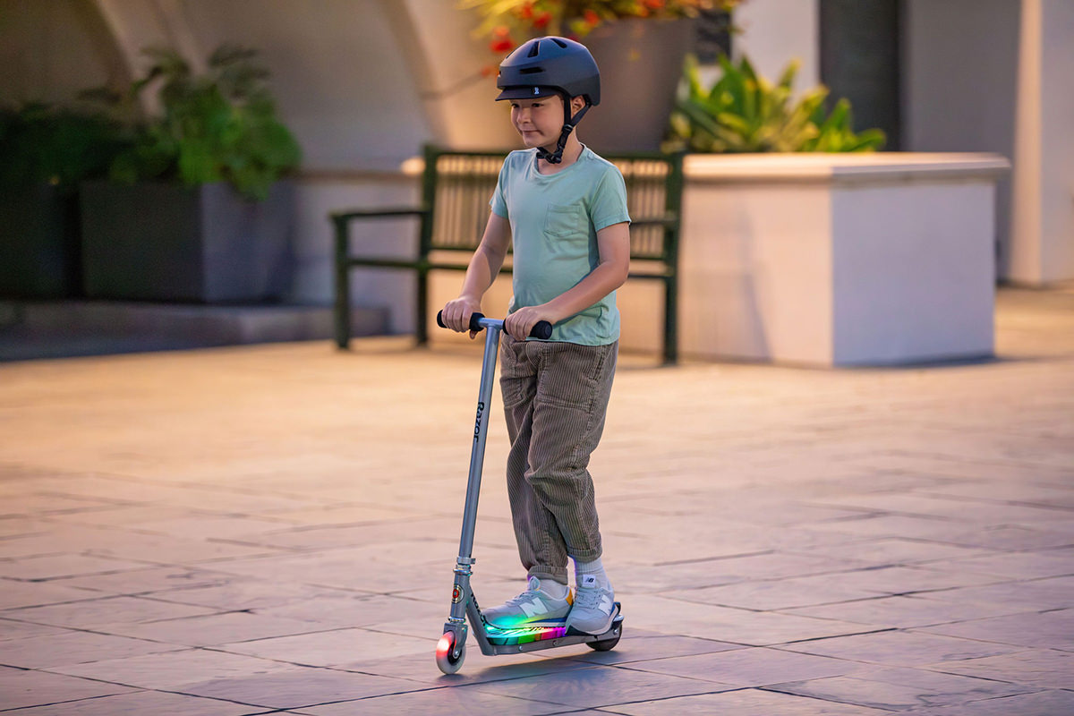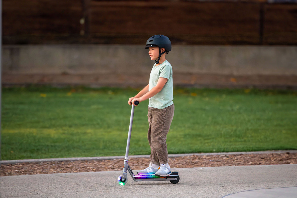 This cool light-up scooter is built to be lightweight yet sturdy for a young rider, with smooth gliding wheels and built-in features like foam-grip handlebars.