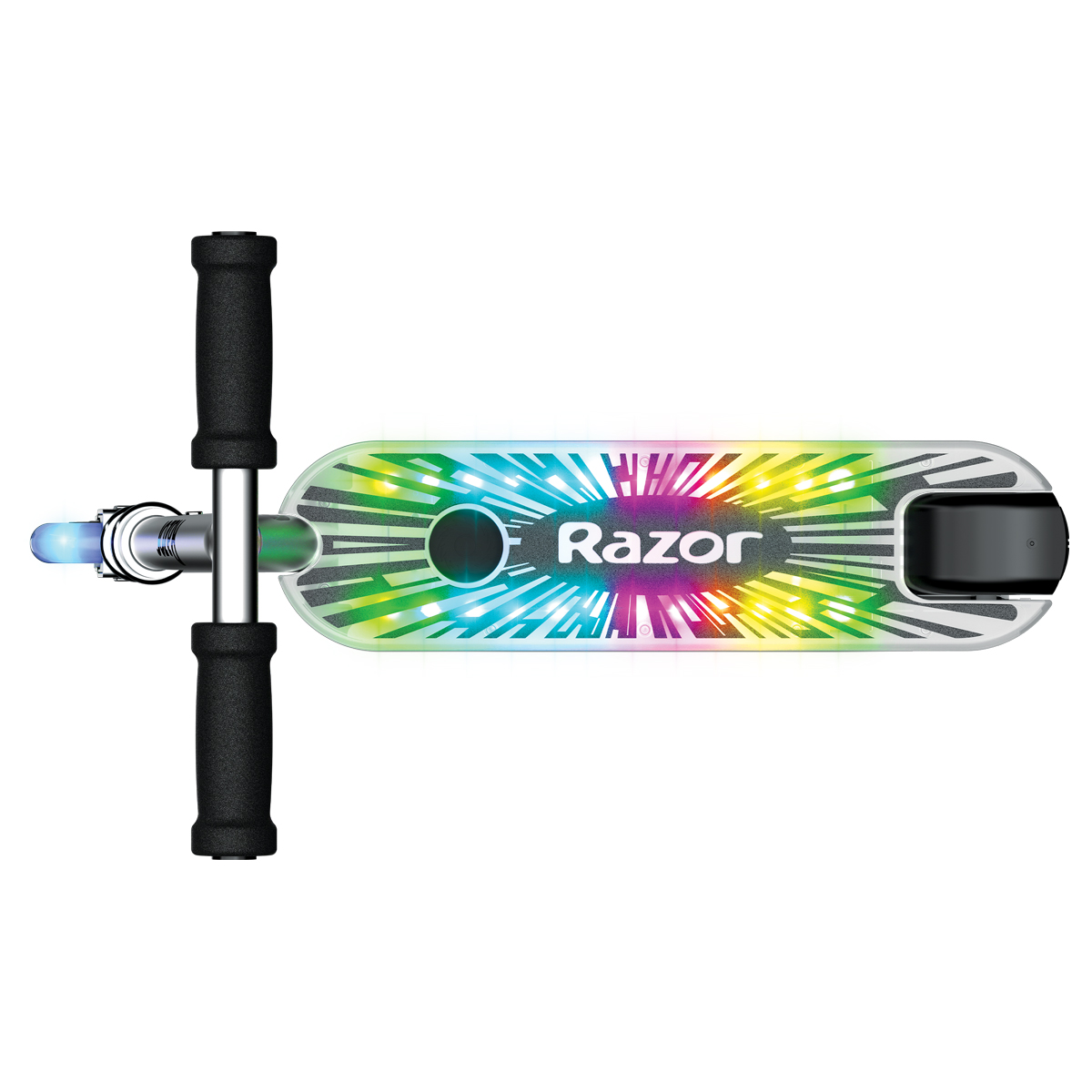 - Glide along in colorful style with a 3 mode, multi-colored LED light-up deck and front wheel.