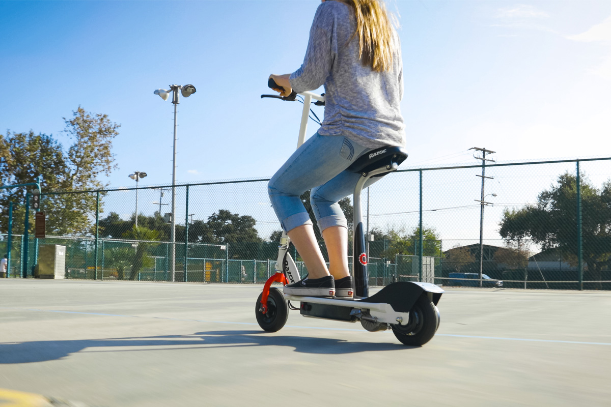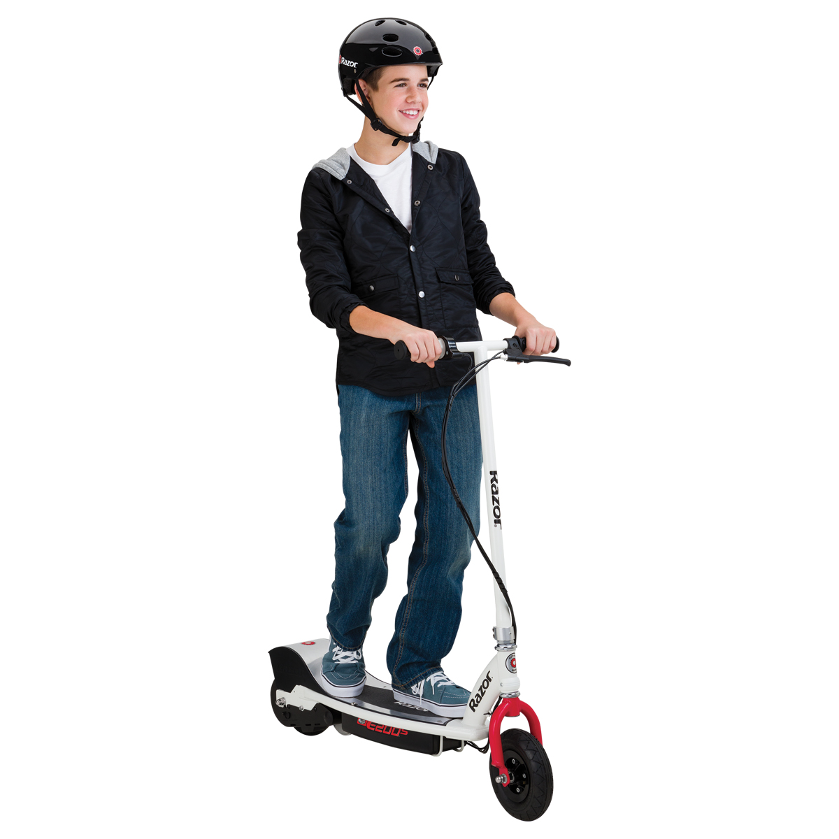 - With its full-size deck and frame, the E200 electric scooter is designed for ages 13 and up