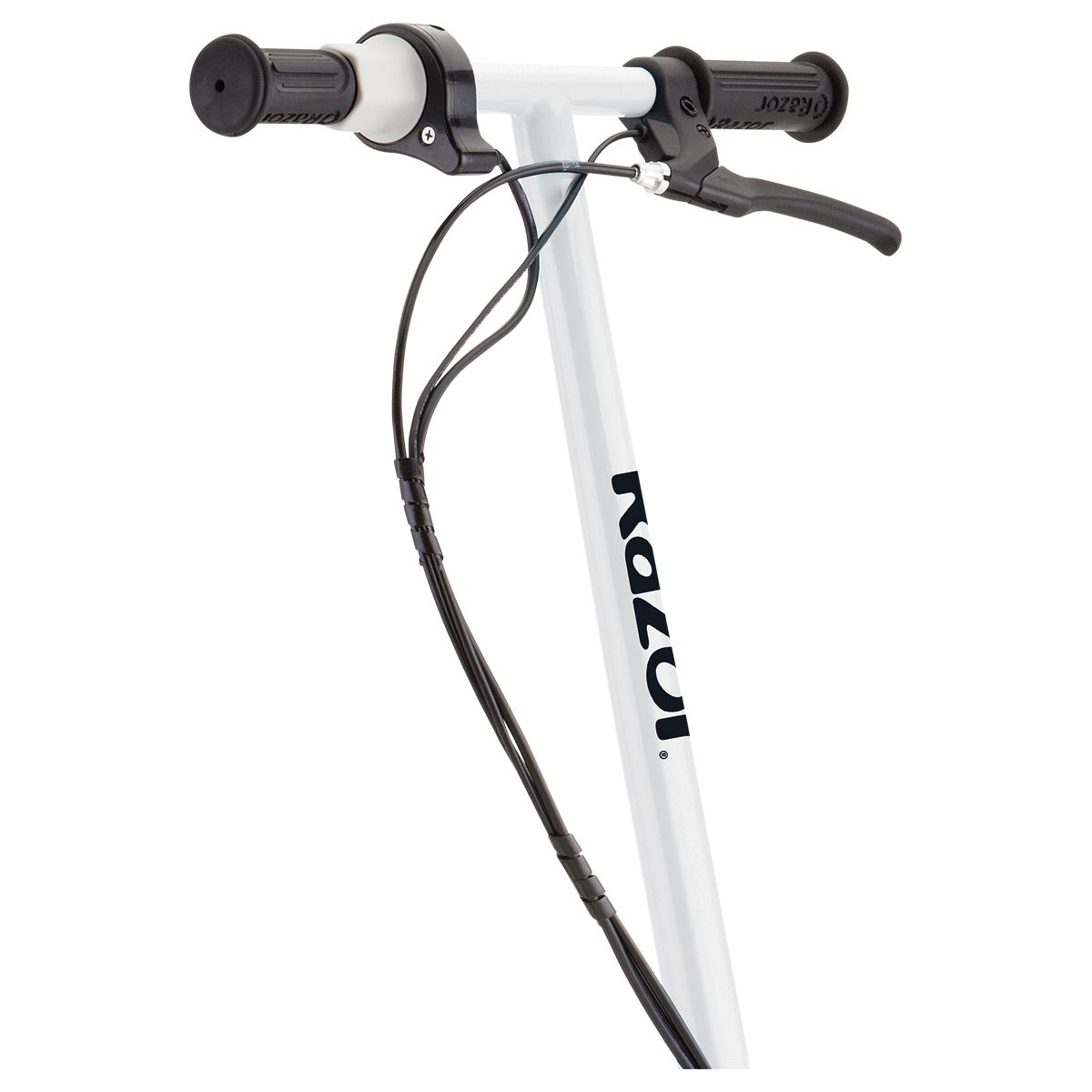- Additional features include twist-grip acceleration control, hand-operated, rear brake and retractable kickstand