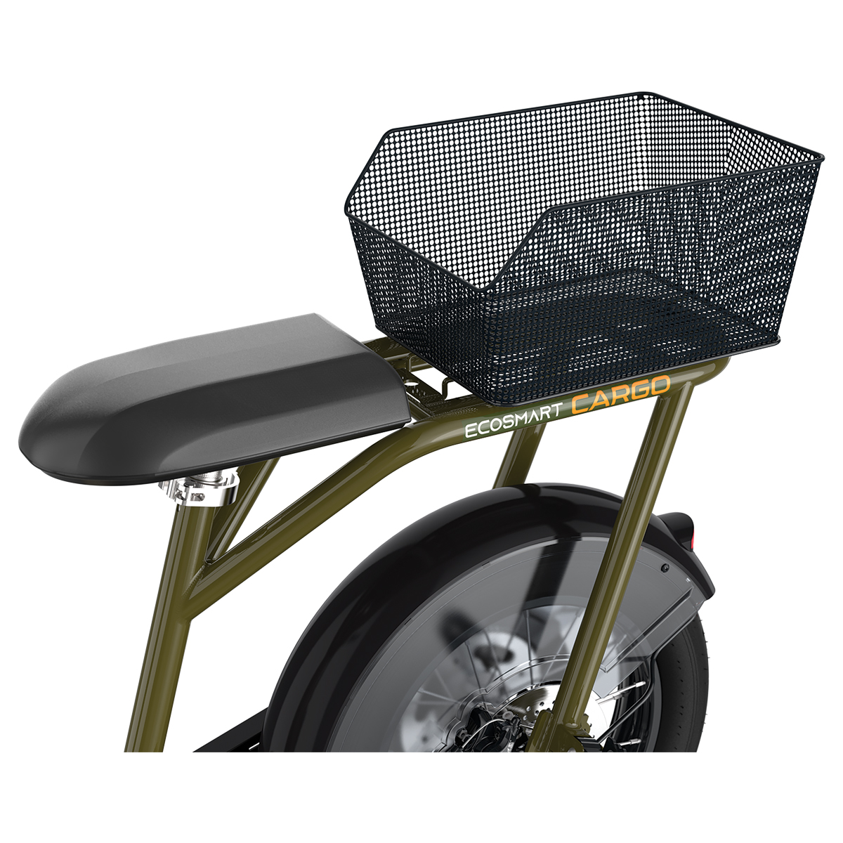 Riders have multiple configurations of the rear rack to choose from: an adult passenger seat with built-in storage compartment, a detachable basket to transport your cargo, or the customizable rack, all of which are included.