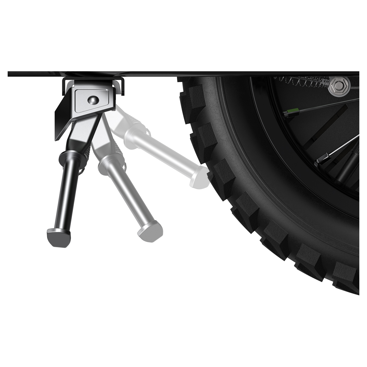 - The 12” (305 mm) pneumatic knobby tires provide support and performance to ride on uneven terrain.