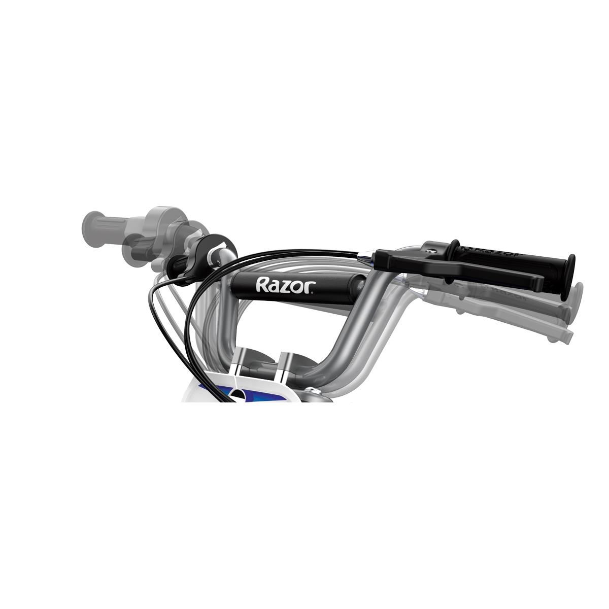 - Features an adjustable-angle, riser-style handlebars, 12” spoked wheels with pneumatic tires, retractable kickstand, and hand-operated rear brake.