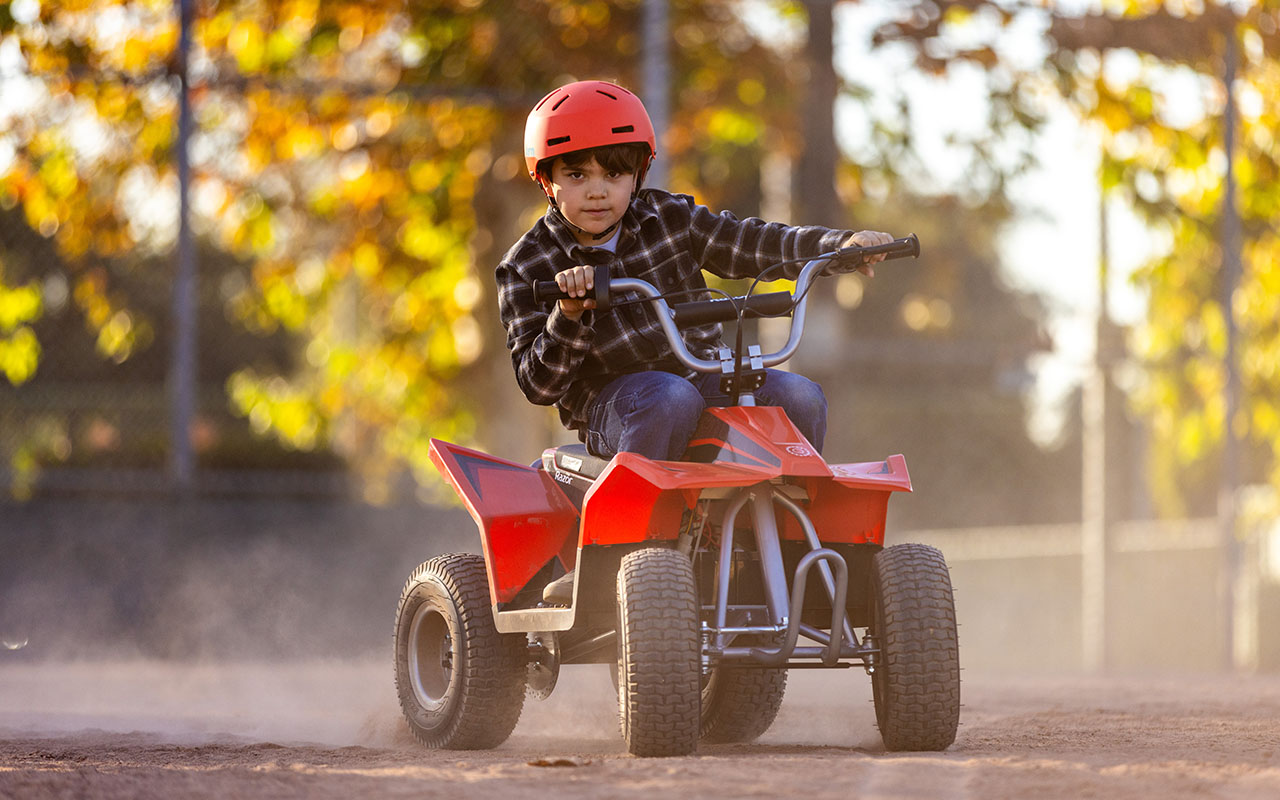 The Dirt Quad is strong, sturdy and built to last. A powder-coated tubular steel frame and shatter-resistant plastic fairings offer stability and durability.