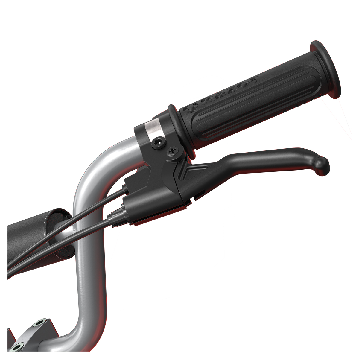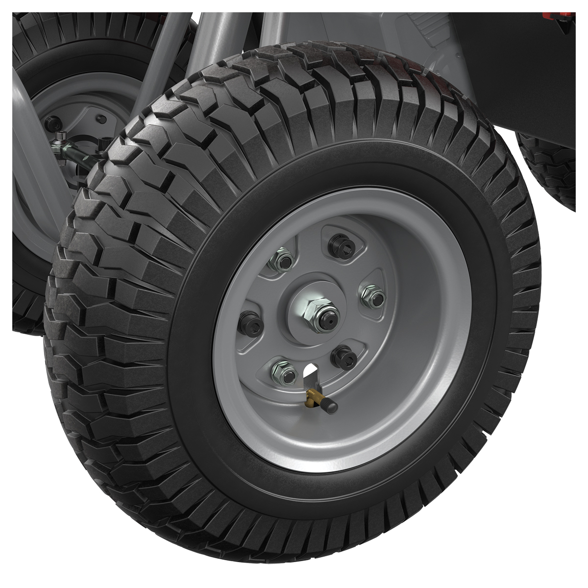- Four 12″ (305 mm) pneumatic tires deliver a smooth ride.