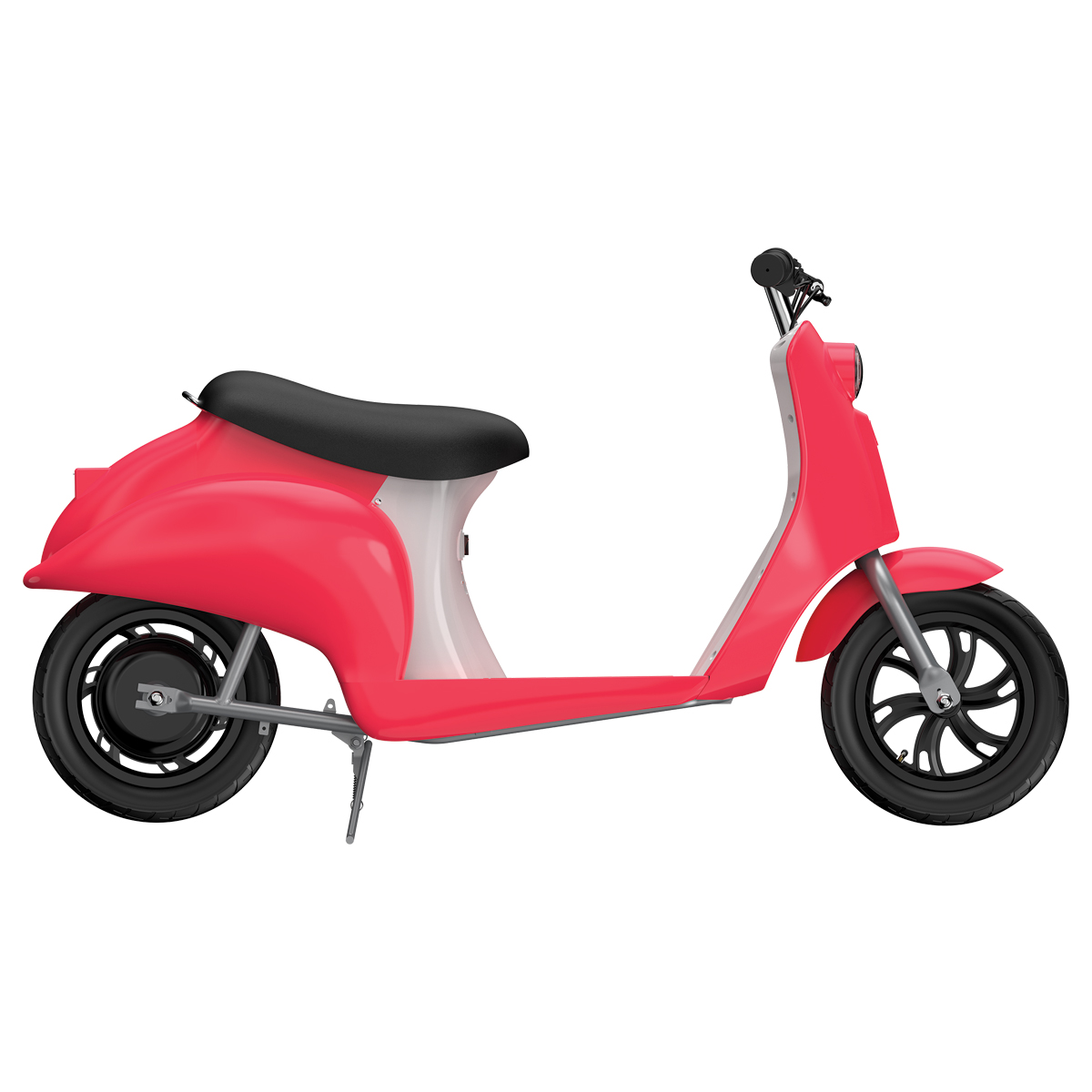 With authentic styling like a padded seat, twist-grip throttle control, and hand-operated brake, the Pocket Mod is a scaled-down version of the classic Euro scooters that inspired it. Customize your ride by selecting from a range of colors, decals, and accessories.