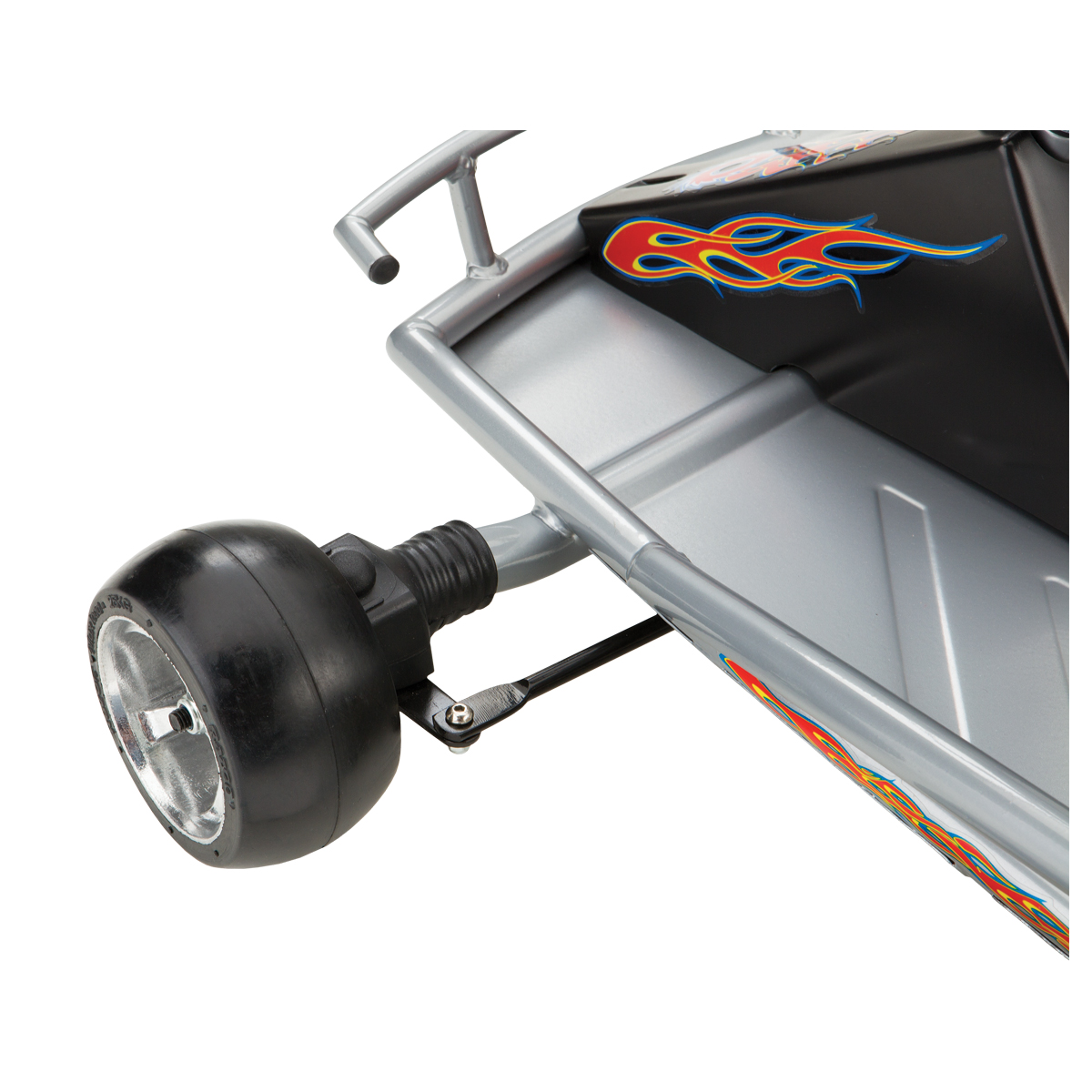 The Ground Force combines classic kart-styling, low-profile and sturdy steel construction with great maneuverability and enhanced steering. Powerful high-torque, chain-driven motor delivers speeds up to 12 mph (19 km/h) and a thumb trigger throttle allows the riders to choose between varied speed levels.