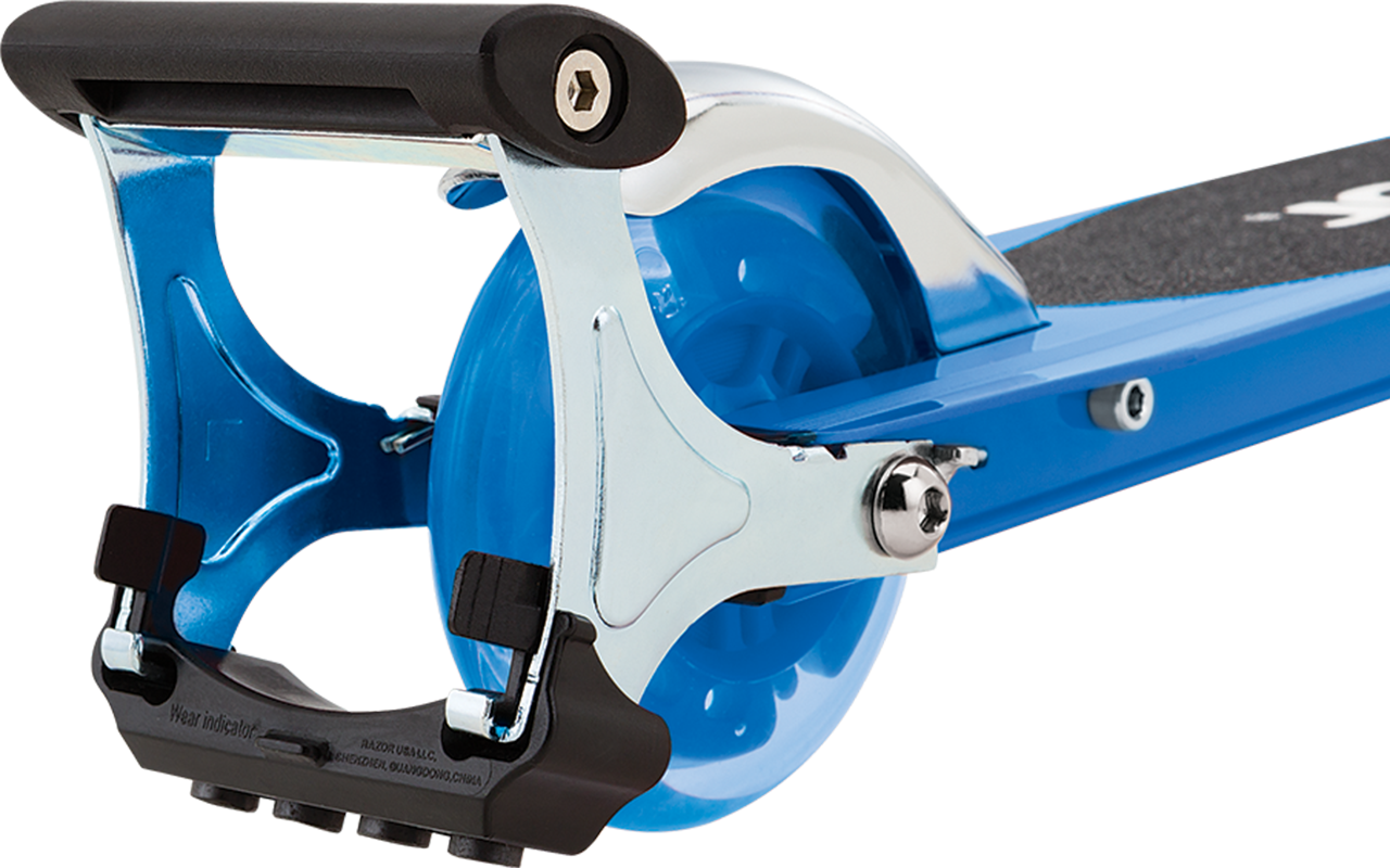S Spark Sport scooter is made with durable single-frame design and features glowing Spark Bar and LED light-up wheels that kids love. Step on the Spark Bar to create localized sparks and watch the wheels glowing along with the flashing sparks. And the easy-folding mechanism makes it easy to take the glowing light show on the go. The grip tape on the aluminum deck helps to keep your feet securely in place and the rear-fender brake provides an easy way to slow down and stop. No assembly required, ready to ride out of the box, just unfold the S Spark scooter and you’re ready to go!