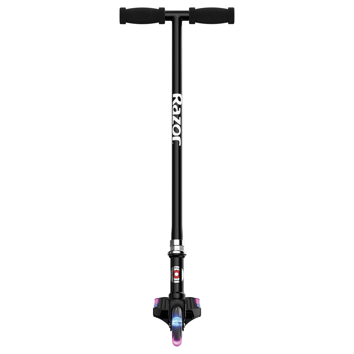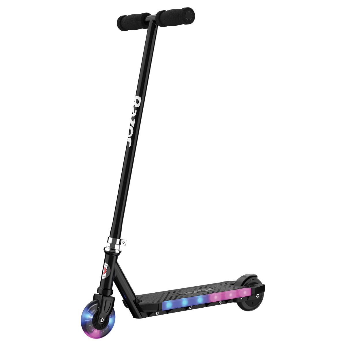 - Give the kids what they want – lights! This light-up kick scooter features multi-color LEDs on the front wheel and deck that are lit through the power of motion.
