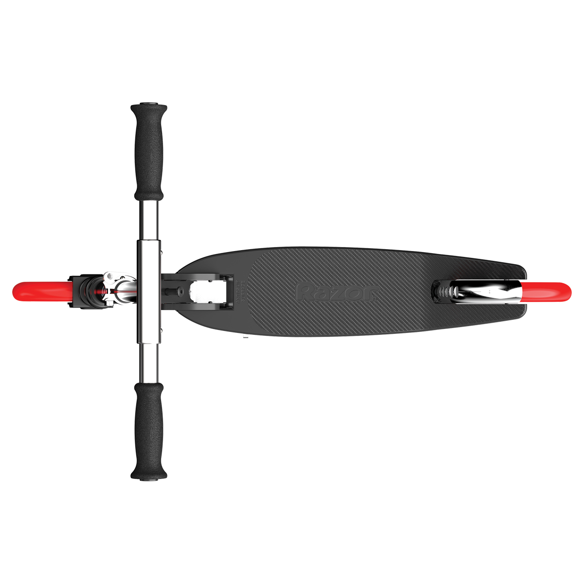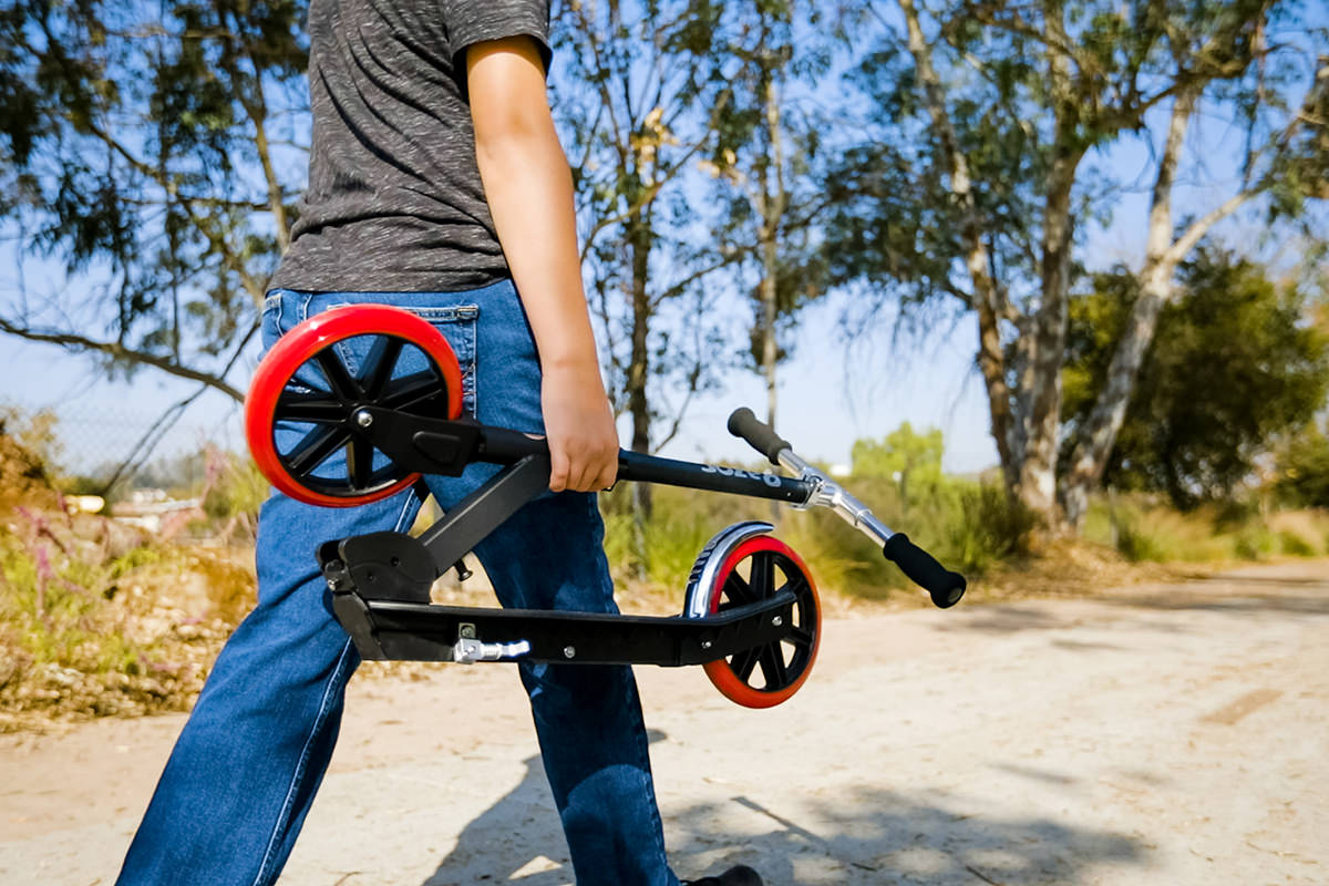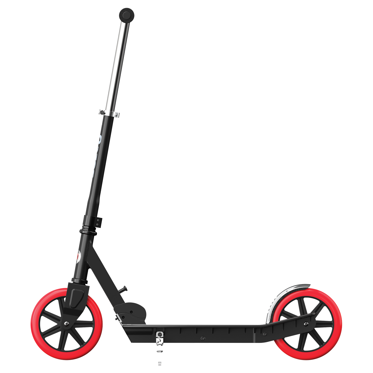 The red-colored, spoked, 8-inch (200 mm) urethane wheels not only provide a smooth and comfortable ride but also bring a bright accent to the cool and stylish scooter.