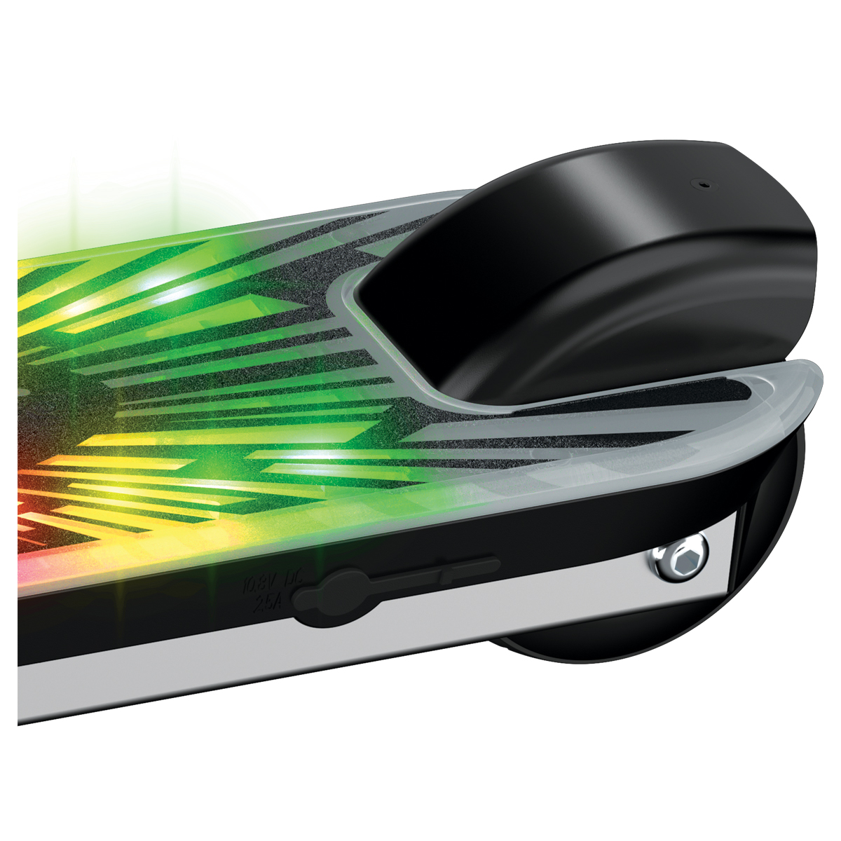 - Glide along in colorful style with a 3 mode, multi-colored LED light-up deck and front wheel.