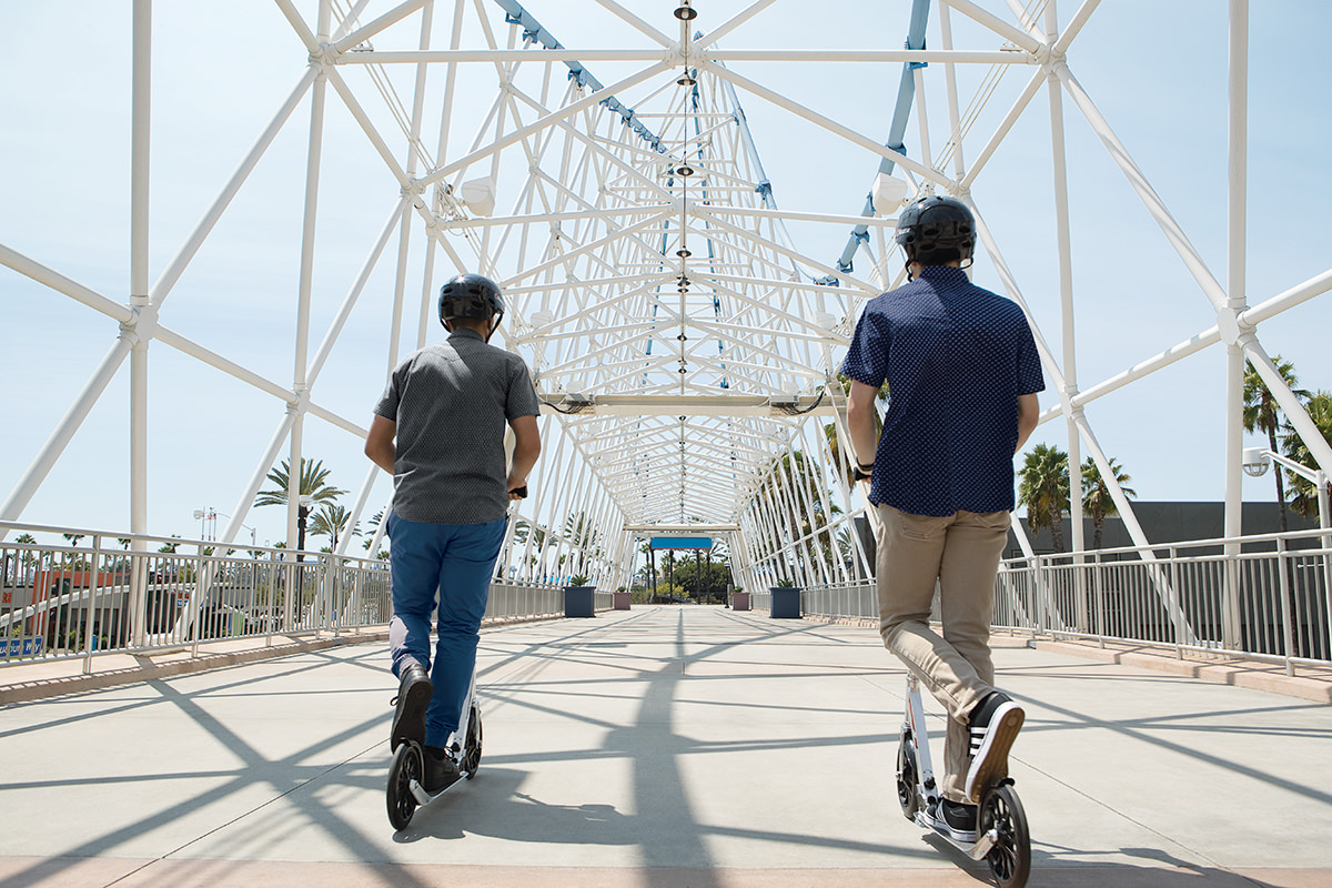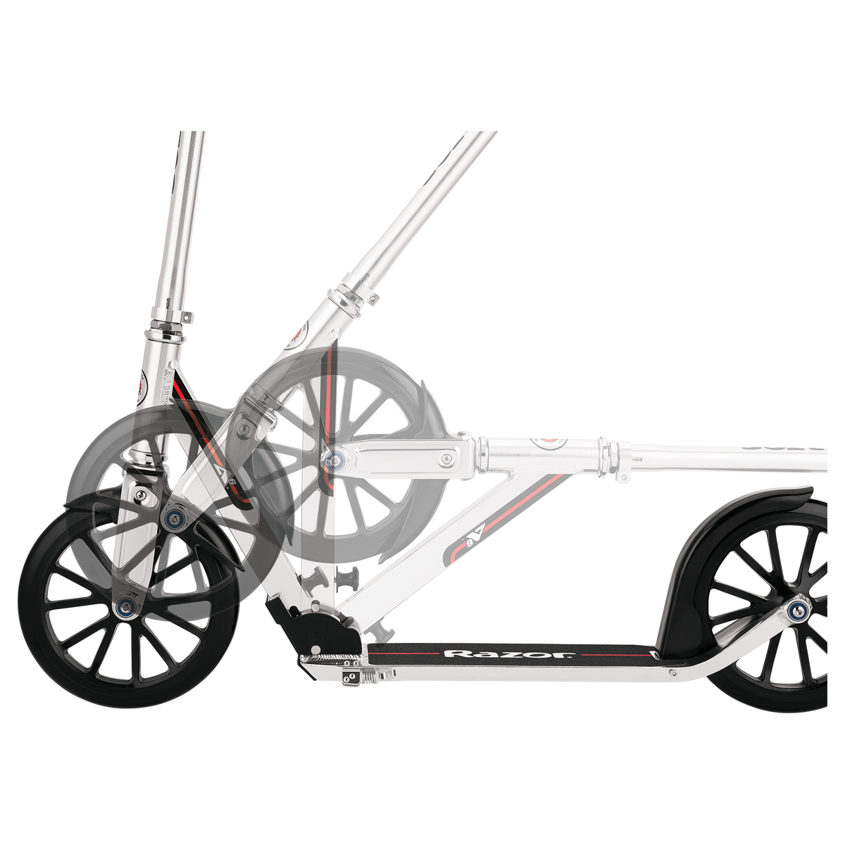 Built for the vertically endowed, the A6 scooter’s 42” extra-tall handlebars mean no more hunching, and the extra-long deck means no more feet scrunching. With its sturdy aluminum frame and super-sized urethane wheels, one kick gives you longer glide, greater speed, and takes your commute from zero to awesome in 60 seconds.