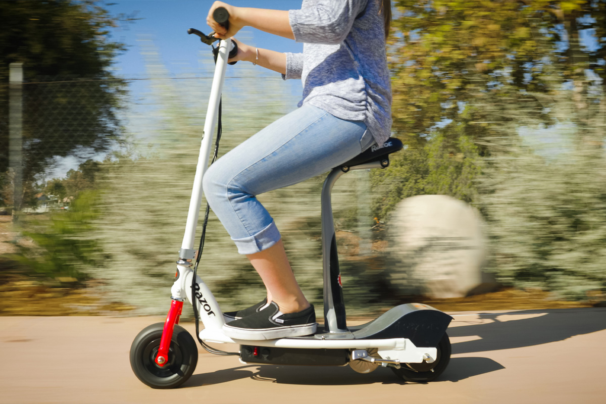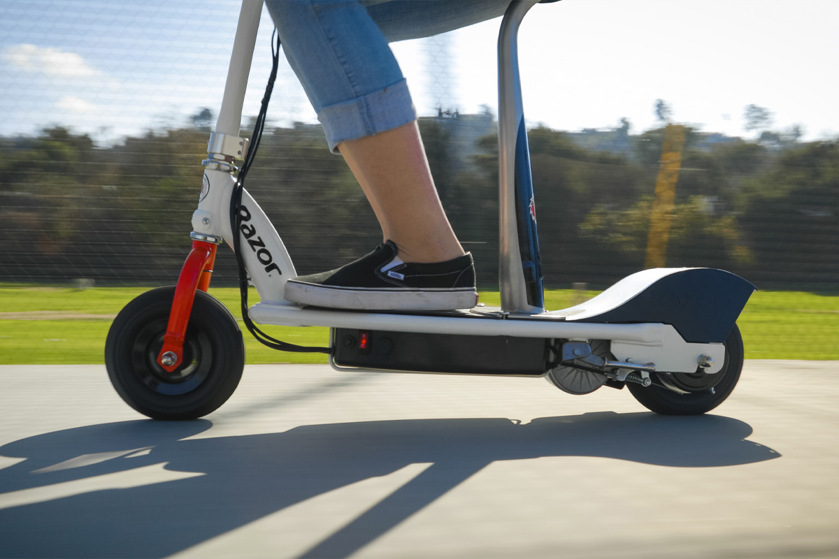 - With its full-size deck and frame, the E200 electric scooter is designed for ages 13 and up