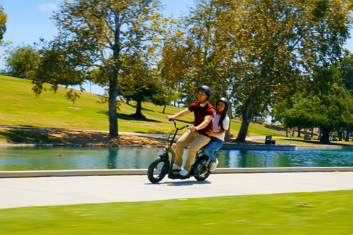 With a high-torque, 1000-watt motor and chain drivetrain, you’ll have a range of up to 16.6 miles (26.7 km) on a single charge and a top speed of up to 19.9 mph (32 km/h). The hand-operated, rear-disc brake provides assured and responsive braking.