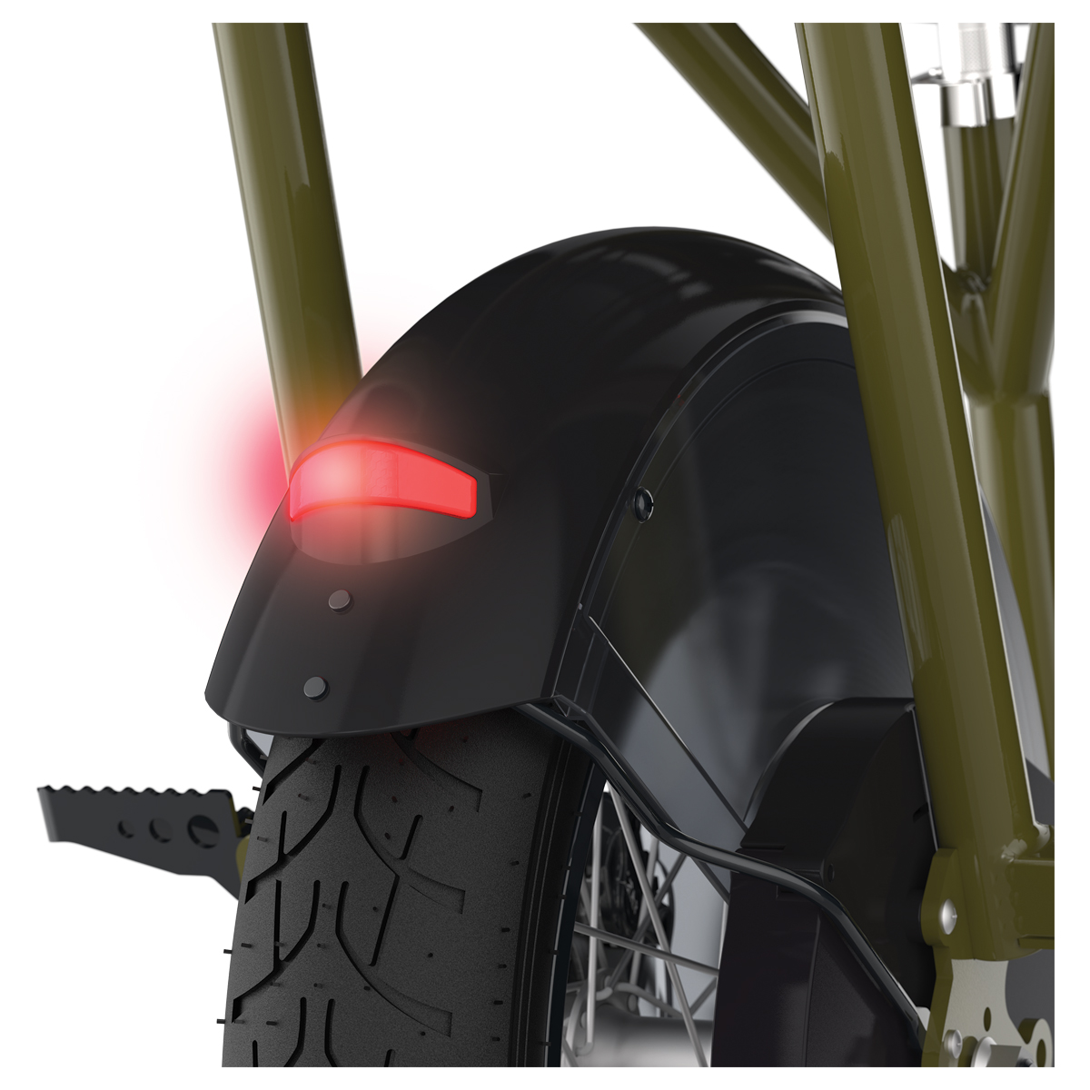 - Boasts a bright LED headlight, LED tail/brake light for better visibility, and a super bright LED dashboard display to keep track of speed and battery life. The five-speed toggle switch also allows the rider to customize the max speed.