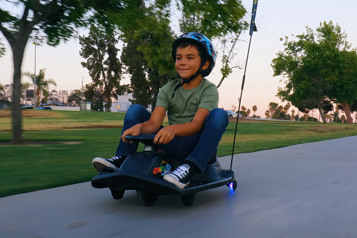 The Crazy Cart Shift’s simplified drift system automatically engages so that riders can keep both hands on the wheel while focusing on steering and throttle control, just like the professionals!