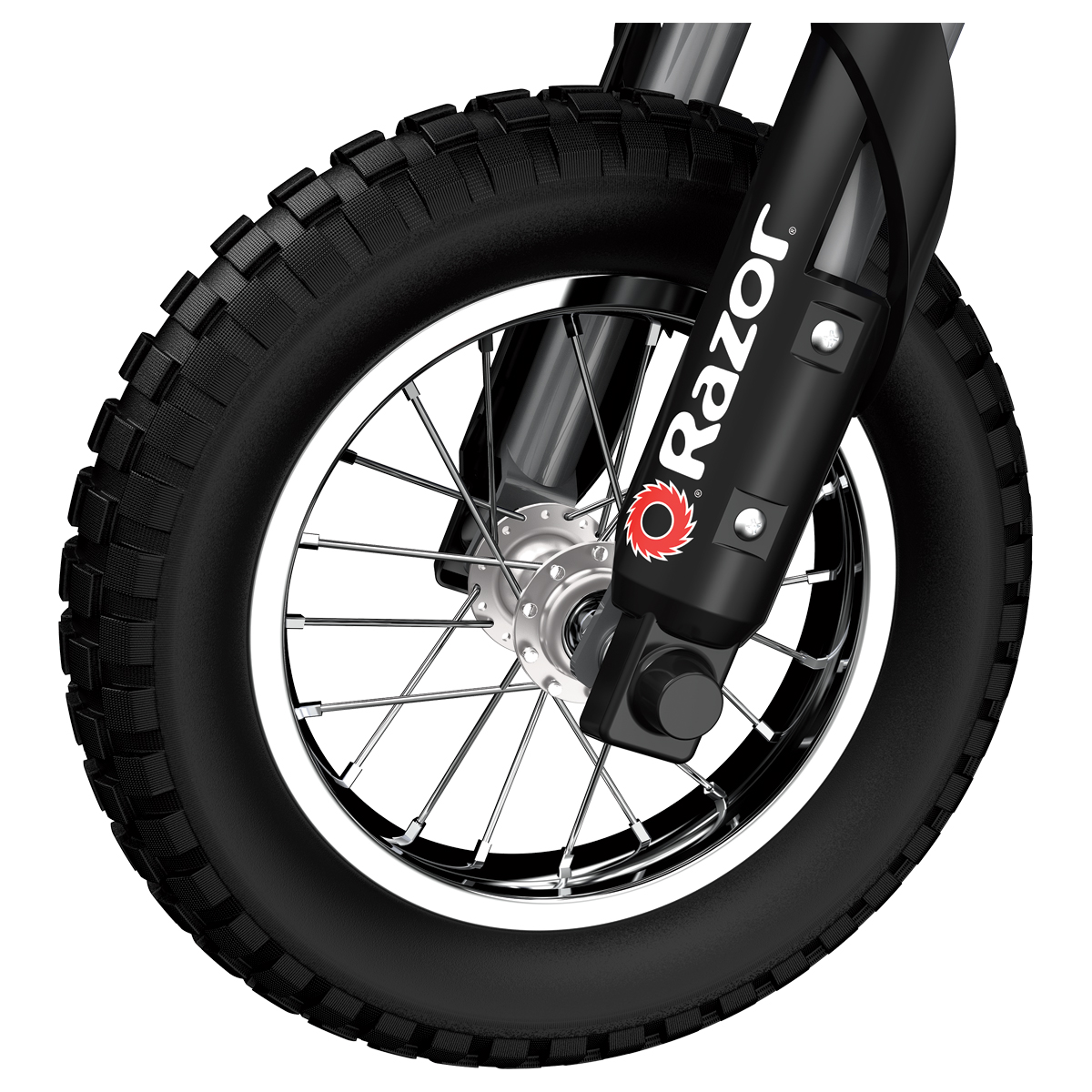 12” spoked wheels with pneumatic tires handle all types of terrain and provide maximum support and performance to ride the trails with ease.