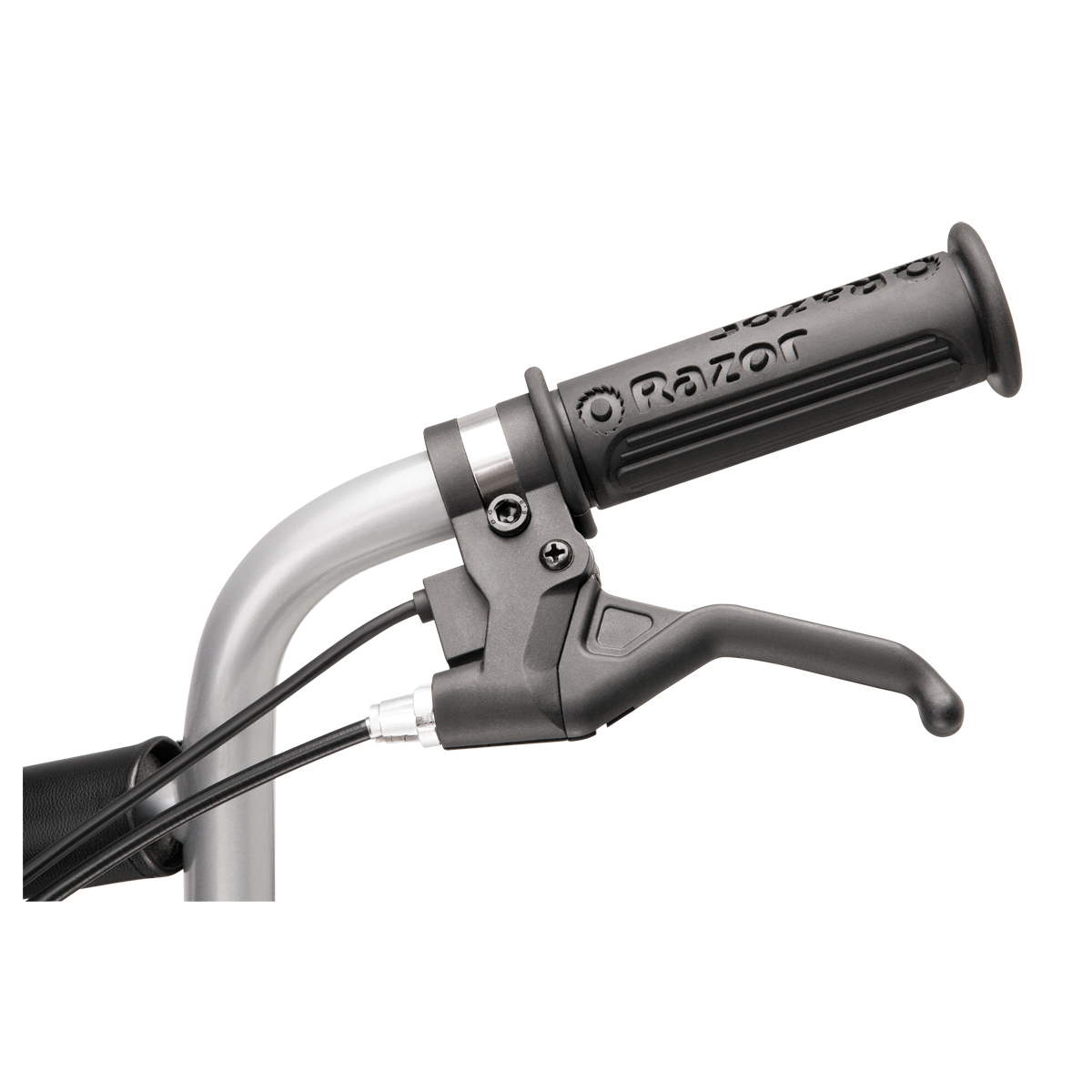 Features a 350-watt, high-torque motor with twist-grip throttle for variable speed (up to 8 mph), forward/reverse drive switch, hand-operated rear disc brake, and high/low 2-speed switch which allows the selection of the right maximum speed.