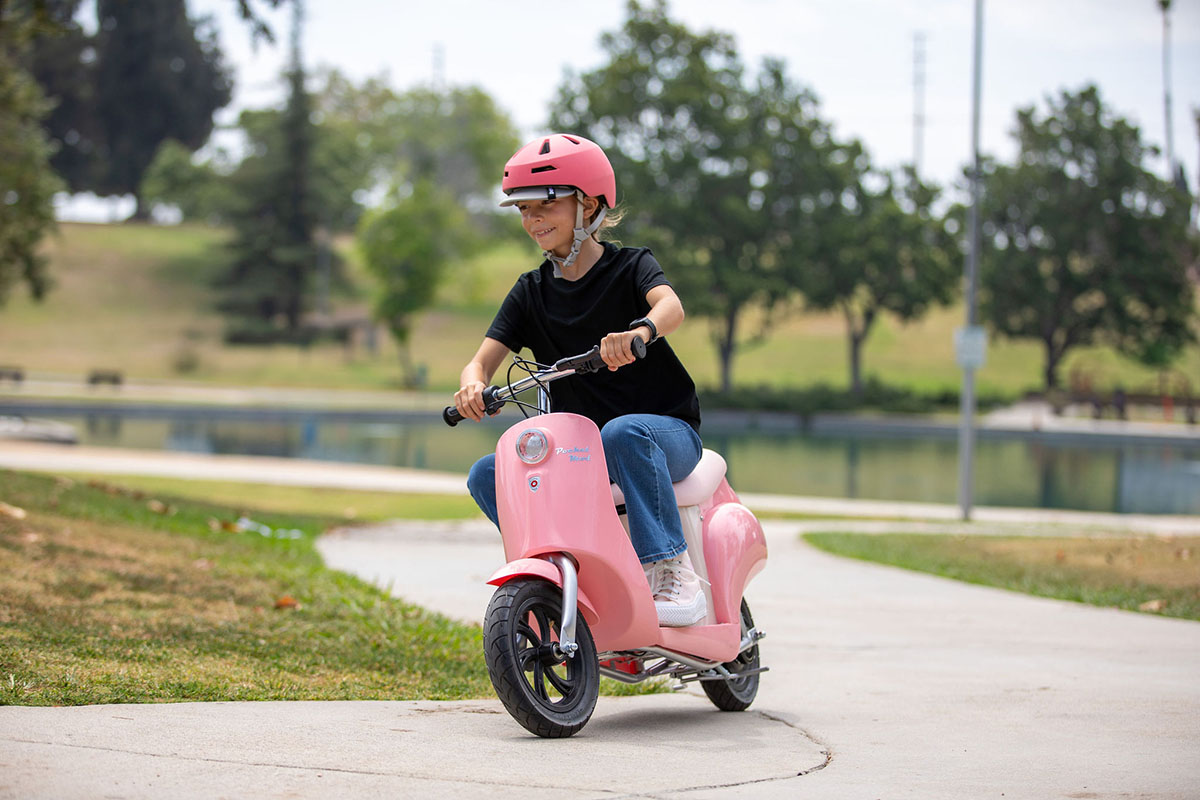 With authentic styling like a padded seat, twist-grip throttle control, and hand-operated brake, the Pocket Mod is a scaled-down version of the classic Euro scooters that inspired it. Customize your ride by selecting from a range of colors, decals, and accessories.