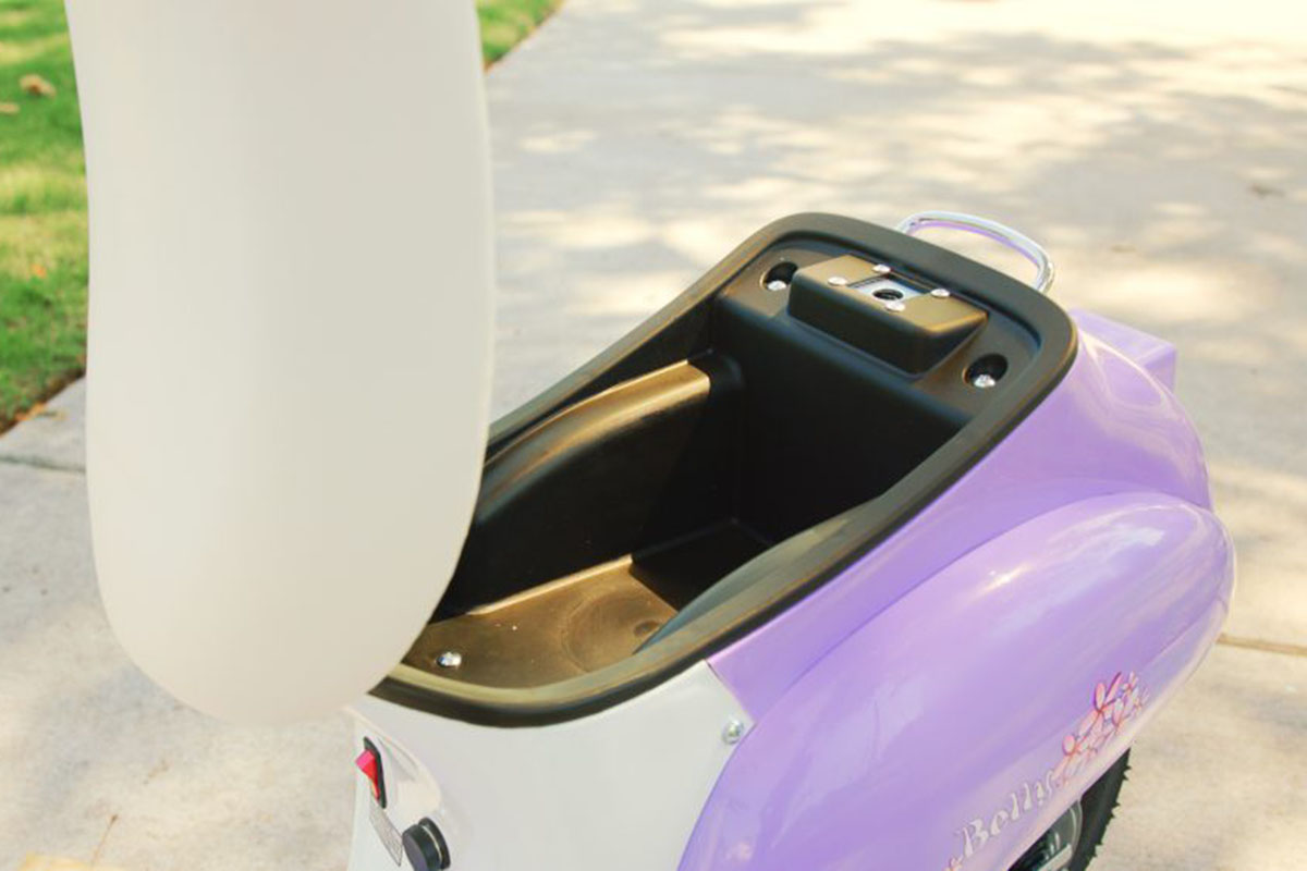 - The secret storage compartment under the seat makes it easy to carry your essentials with you, and the dual kickstand keeps everything upright.