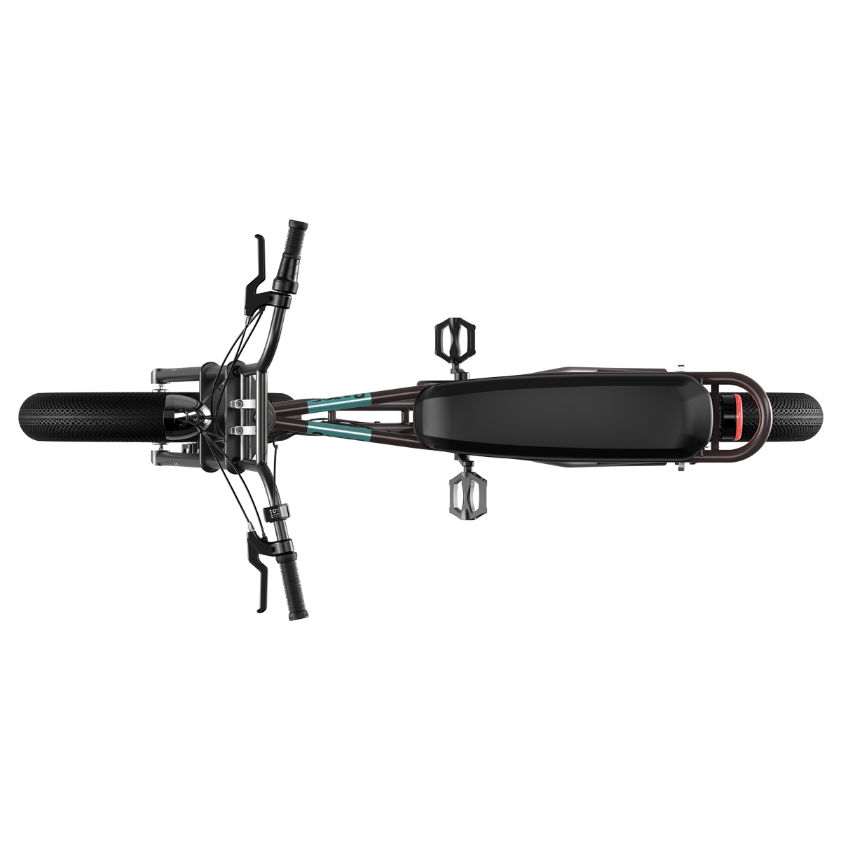 - Features 20” (508 mm) x 4” (101.6 mm) pneumatic balloon tires, hand-operated front and rear disc brakes, bright LED headlight and taillight, and a dashboard display