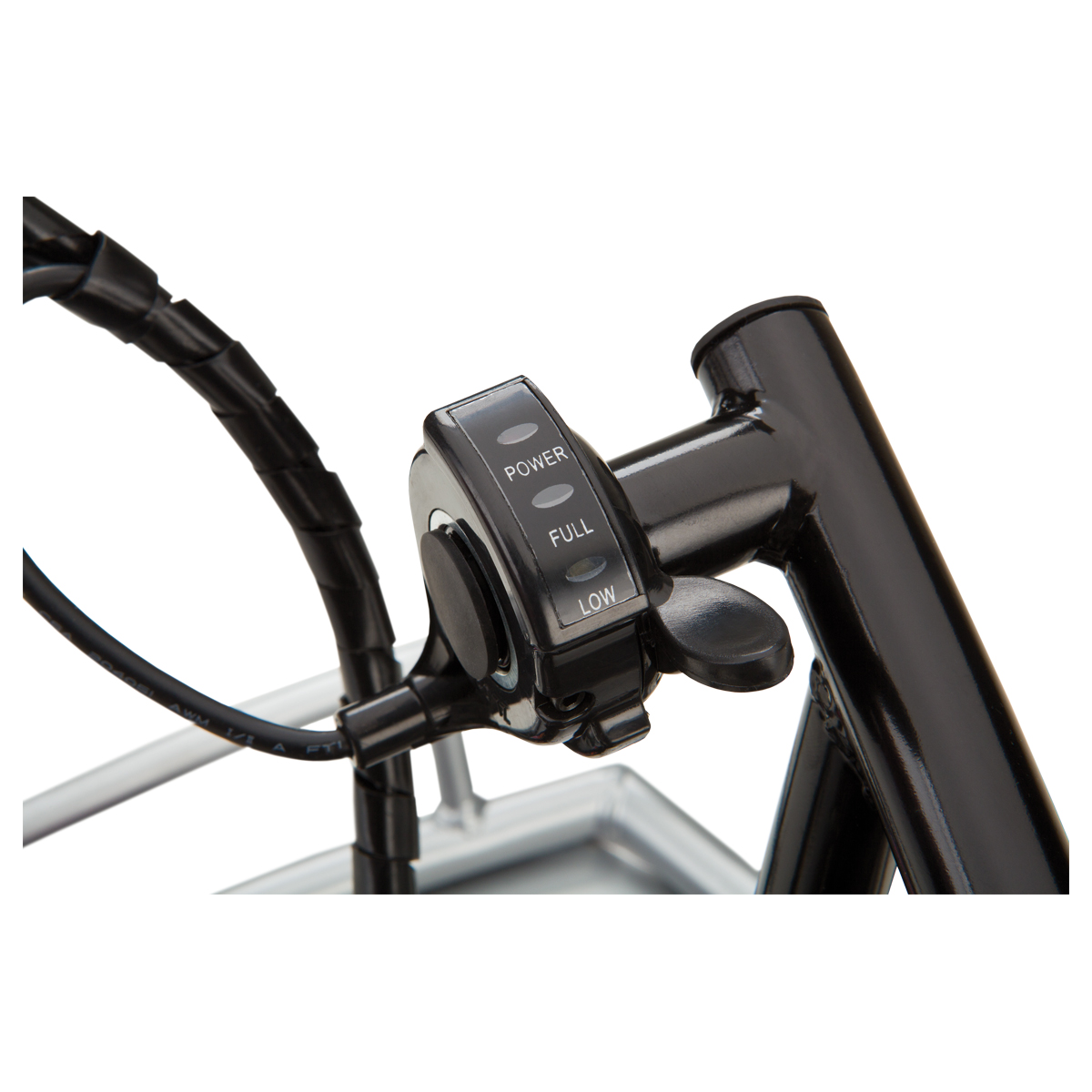 - Powerful high-torque, chain-driven motor delivers speeds up to 12 mph (19 km/h) and a thumb trigger throttle allows the rider to choose between varied speed levels.