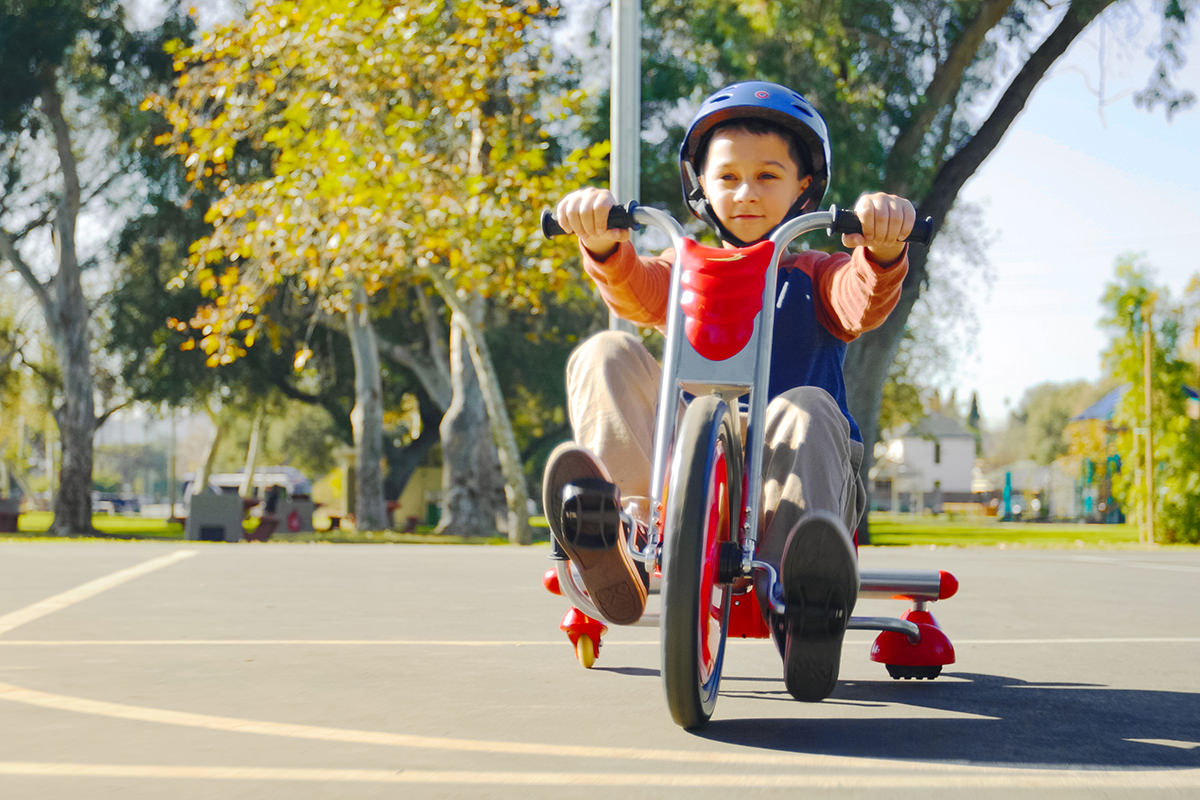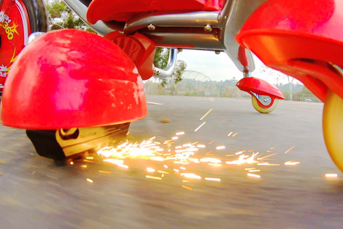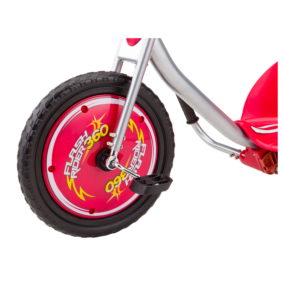 The FlashRider 360 turns and drifts on dual-inclined caster wheels and adds a Spark Bar. Now kids can spin and spark!